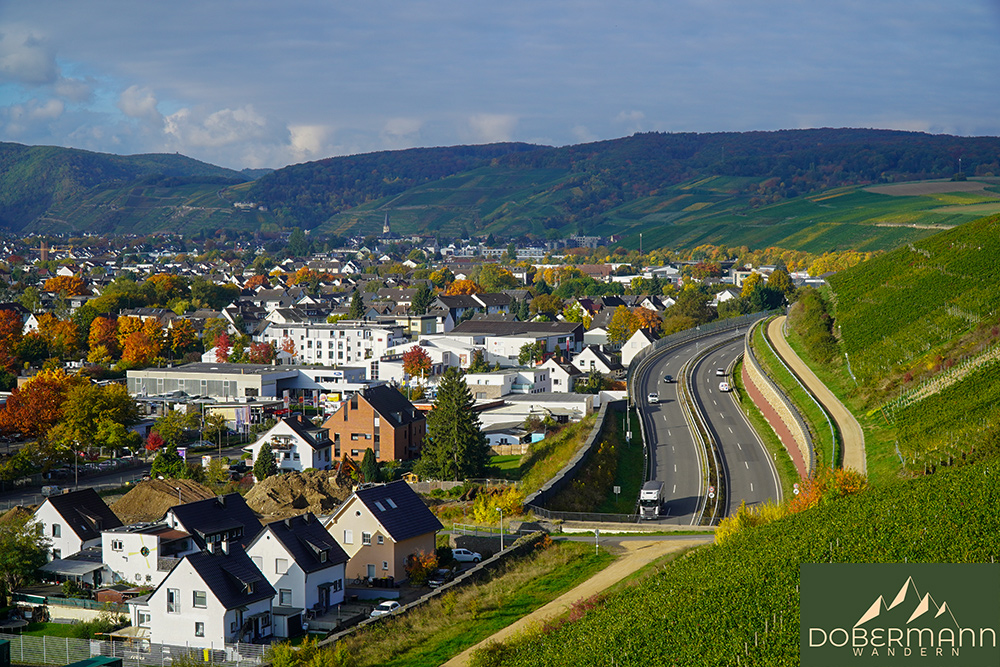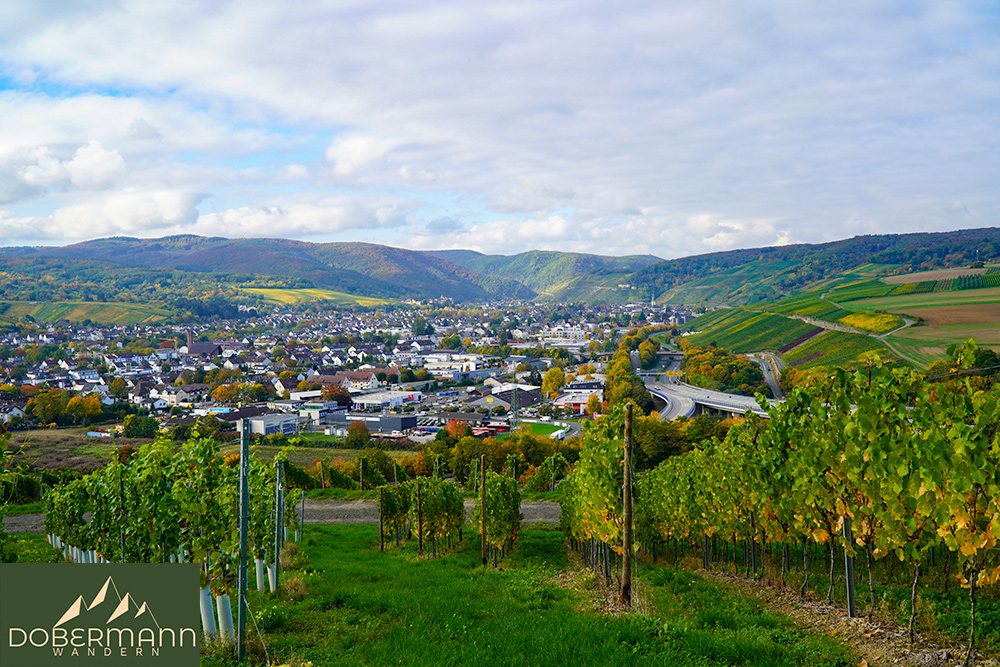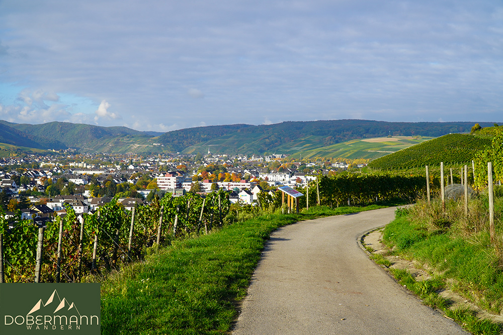 Ausgehend vom Schwertstal geht es auf einem Teilstück des Rotweinwanderweges in Richtung Bad Neuenahr selbst.