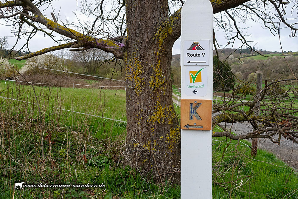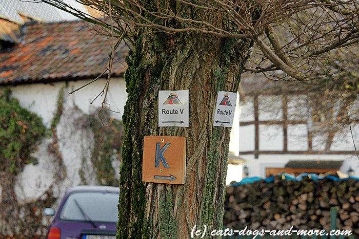 Stellenweise teilen sich auch die Keramikroute und die Rundtour Vinxtbachtal den Weg, so dass wir unterwegs immer wieder einmal auf gleichen Wegen unterwegs sind.
