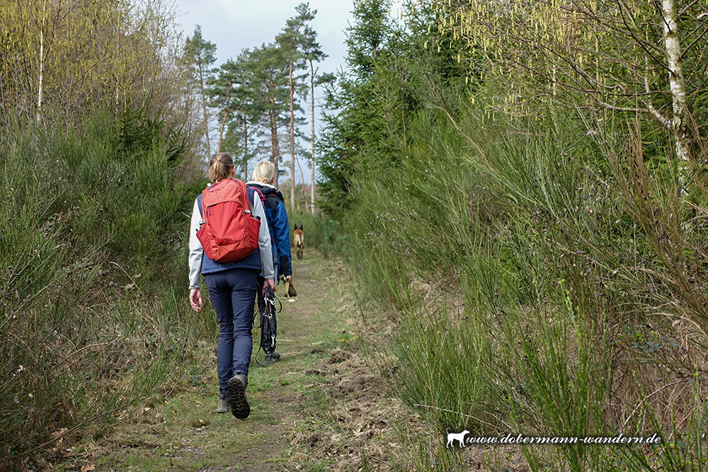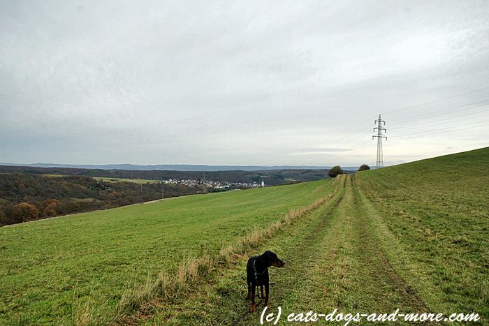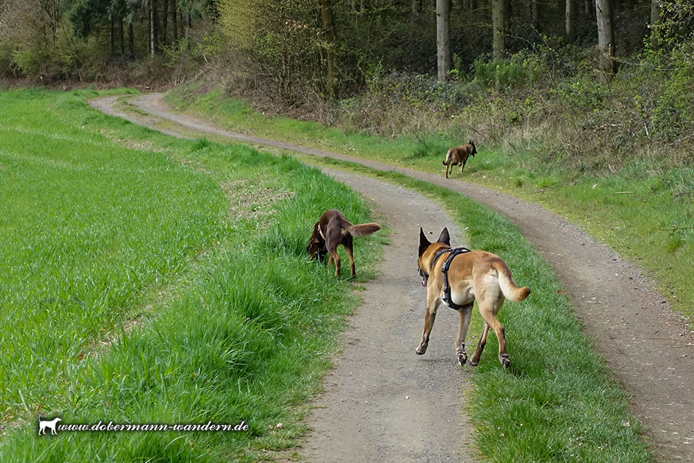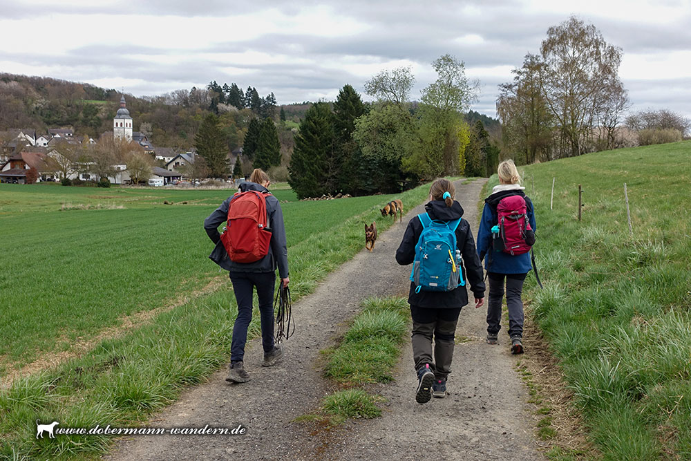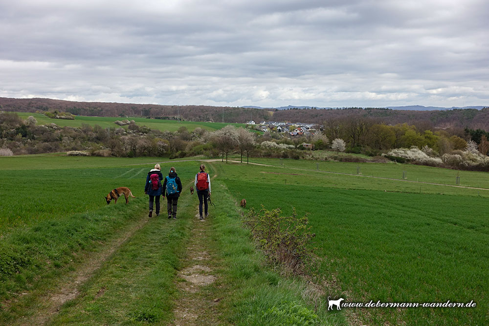 Da wir den Startpunkt an die Volksbank gelegt haben – um mit den Hunden nicht durch den Ort zu gehen – geht es auf dem Rückweg dann auch vom eigentlichen Weg ab und so zurück zum Ausgangspunkt.