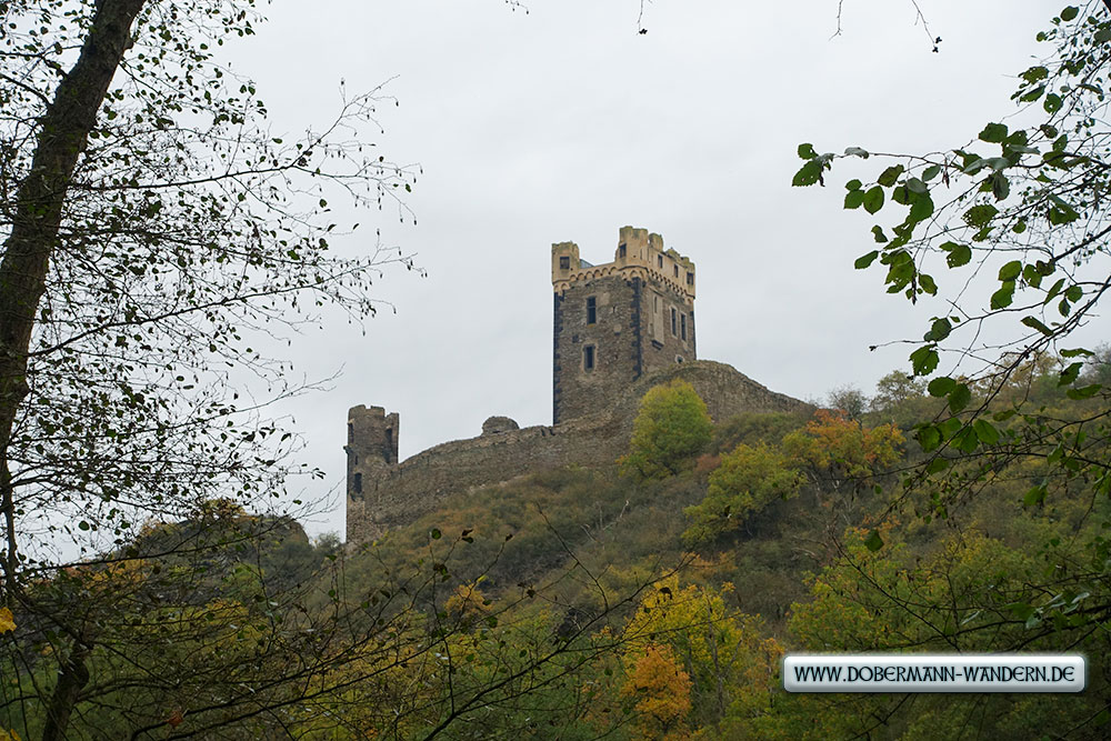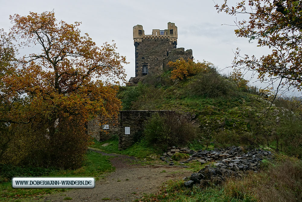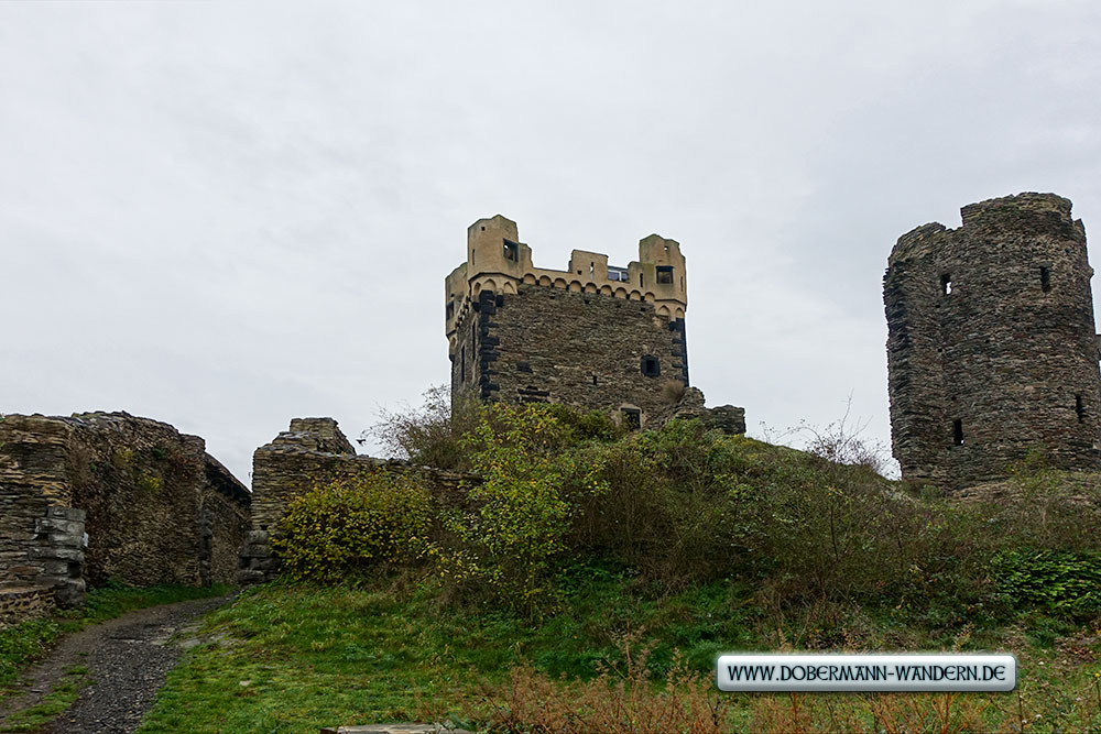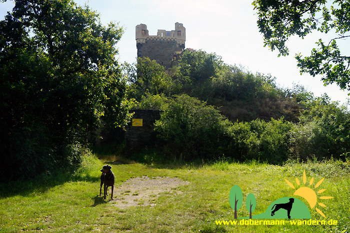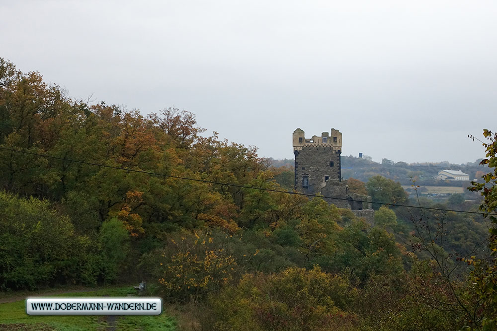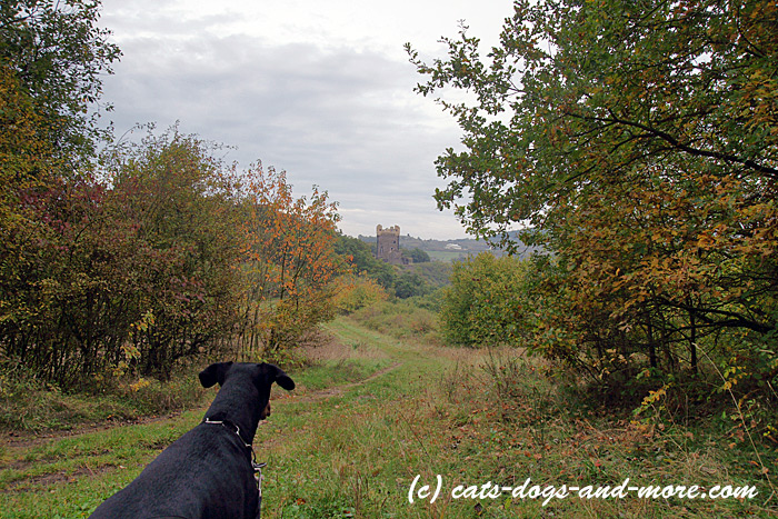 Unterwegs sehen wir die Burgruine rechts oberhalb im Sichtfeld auftauchen (auf dem Bild leicht herangezoomt).