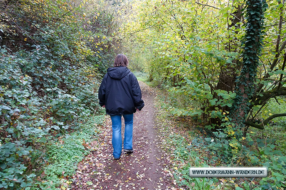 Der Weg führt nun in den Wald und wird schmaler. So laufen wir parallel zur Nette.