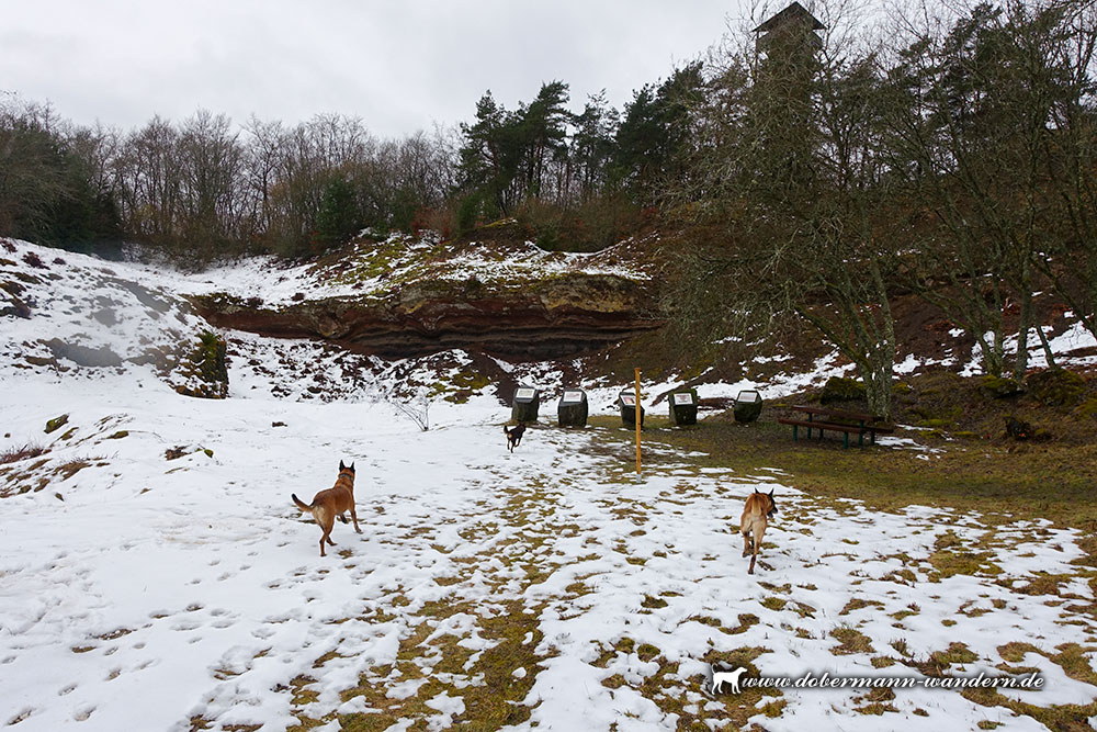 In der Umgebung der Maare finden sich Tuffgruben, in denen die beim Ausbruch der Maare entstanden vulkanischen Tuffe abgebaut wurden.