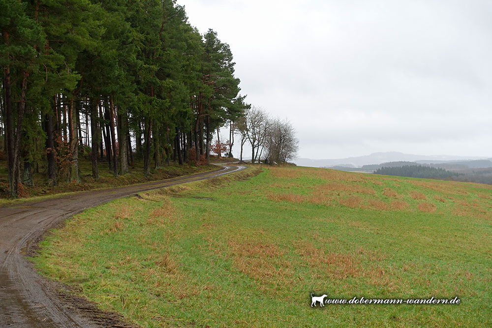 Vom Wanderparkplatz aus führt ein schmalerer Pfad auf die Rundstrecke selbst.