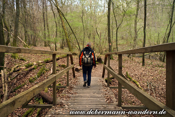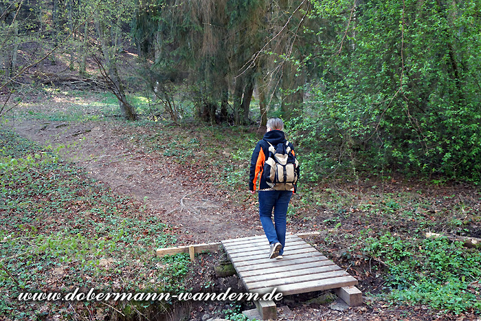 Wir haben den Ort Fensterseifen durchquert und gehen am Ortsrand wieder in den Wald hinein.