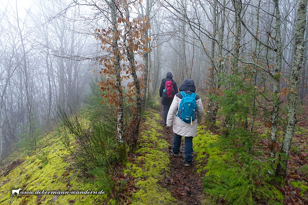Witterungsbedingt war diese Wanderung zwar auch vernebelt und somit ohne schöne Weitsichten, aber das wussten wir vorher. So war es wieder „mystisch“ und wir waren alleine als Wanderer auf der Strecke.