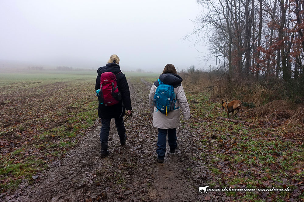 Nach passieren des Windrades stellen wir fest, dass in diesem Bereich der Pfad auch von Reitern genutzt wird. So wird es teils richtig matschig für uns.