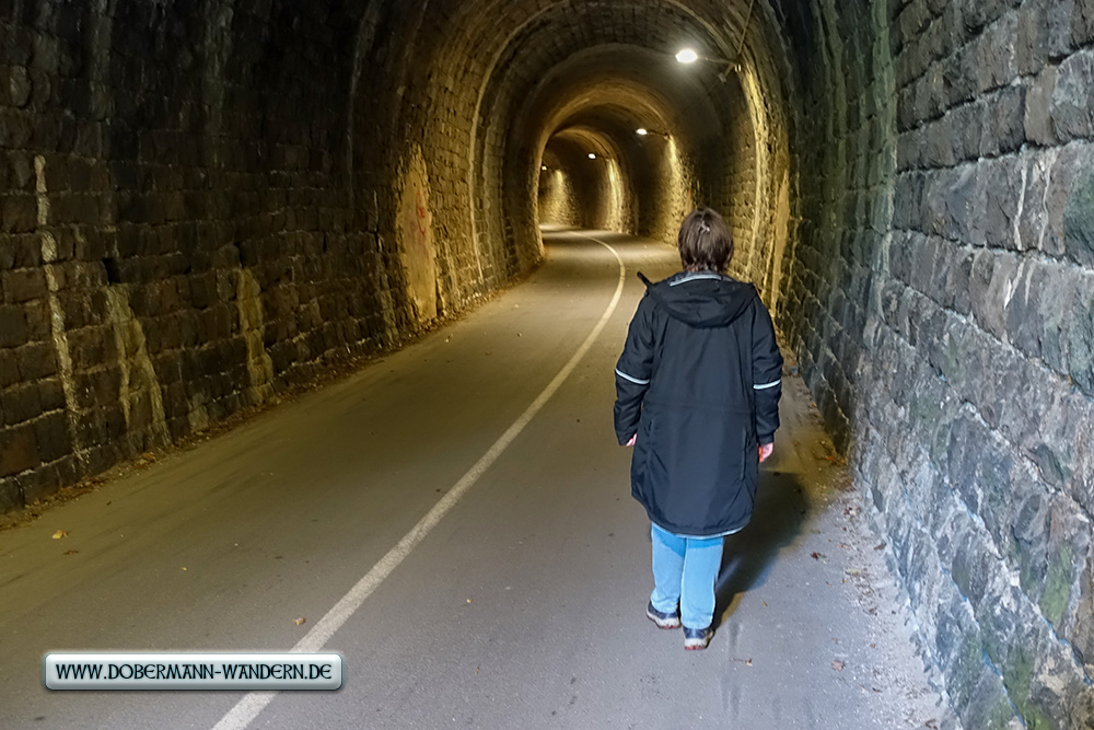 Es geht wiederum links und wir stehen vor einem ehemaligen Eisenbahntunnel, der „Hausen 2“ genannt wird.