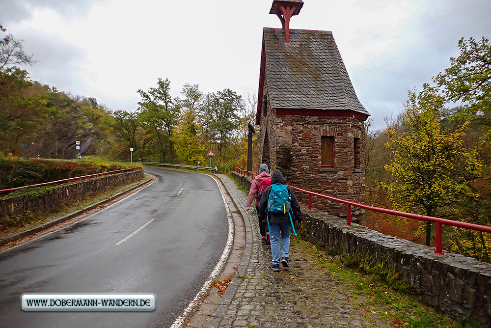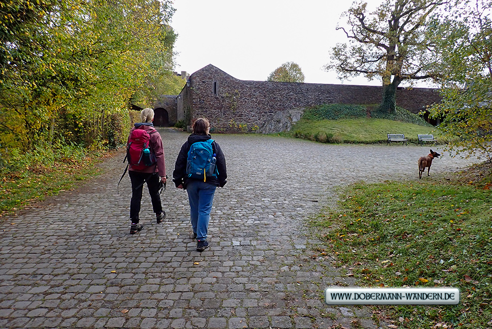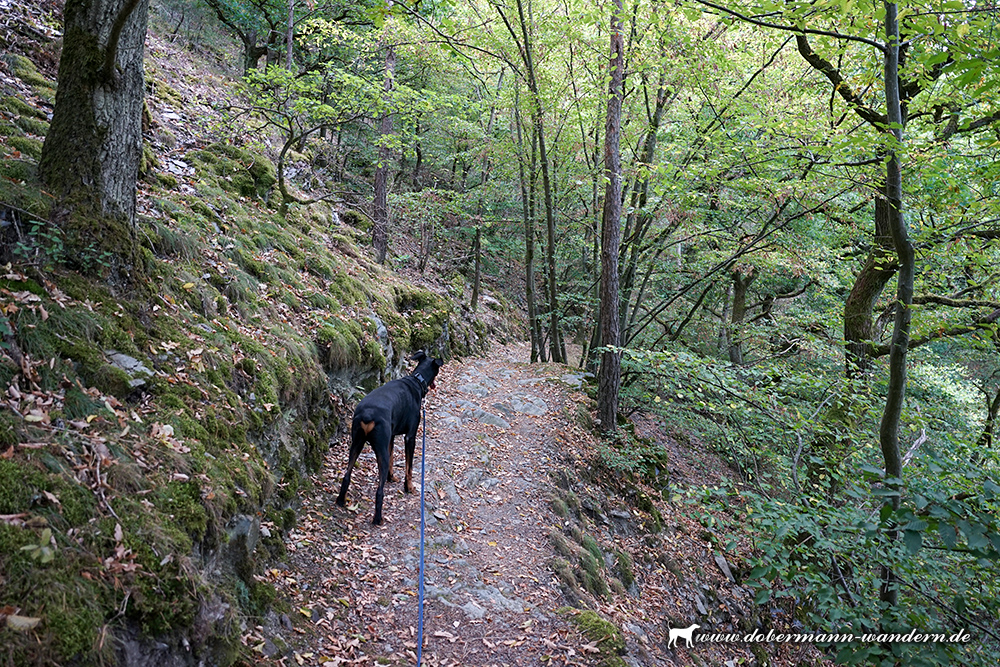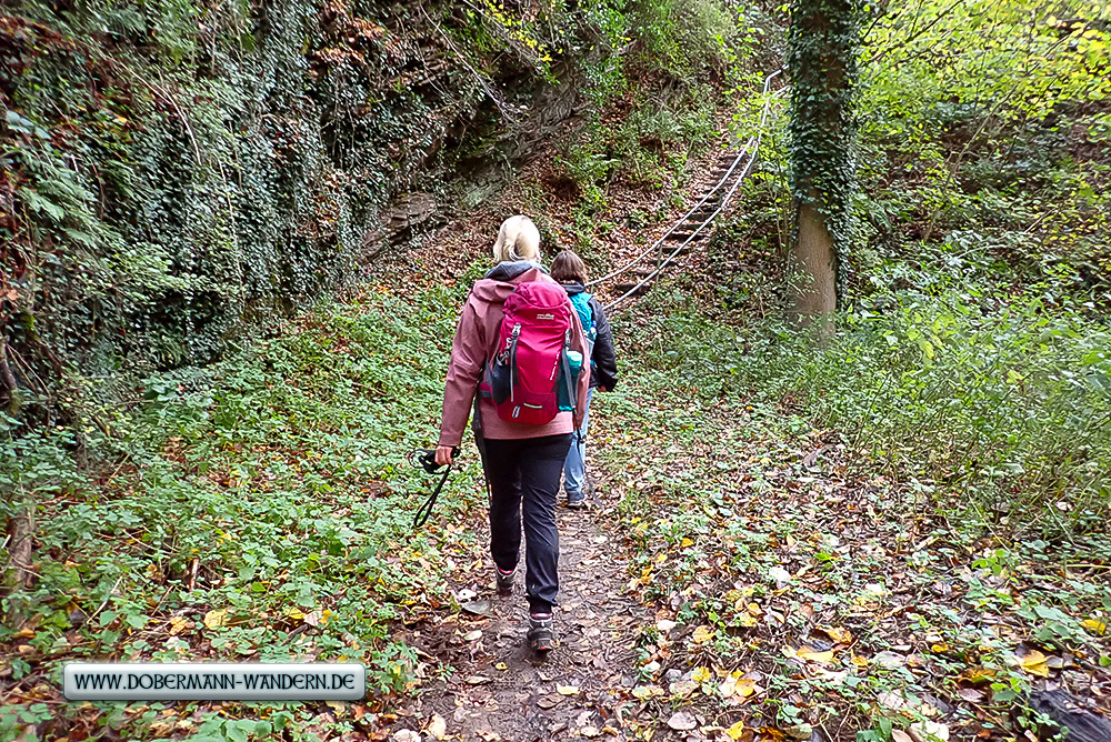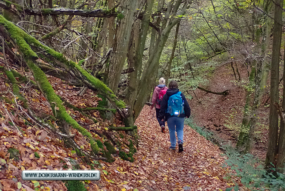 Es war vorher schon klar, dass es in mehreren Wegstreckenbereichen aufgrund des Regens – auch der Tage zuvor – auf den Passagen mit Schiefer, der zudem mit nassem Laub bedeckt war, rutschig werden dürfte.