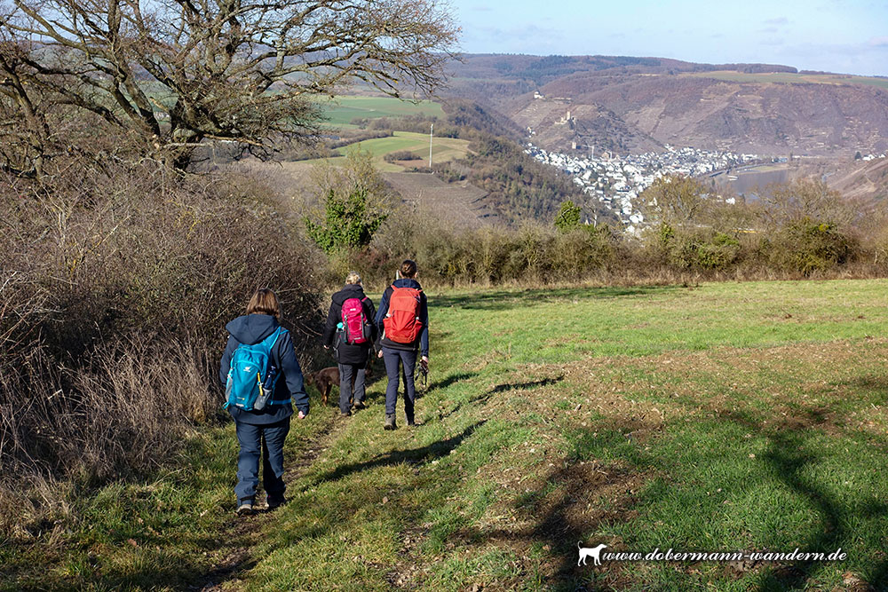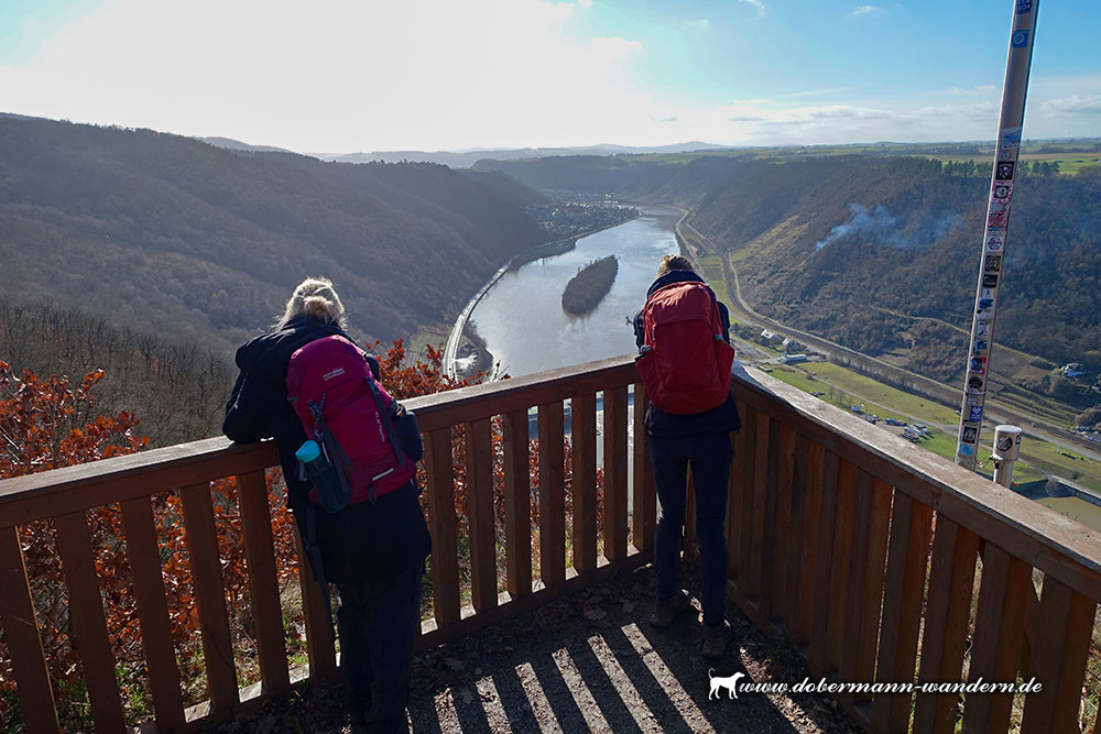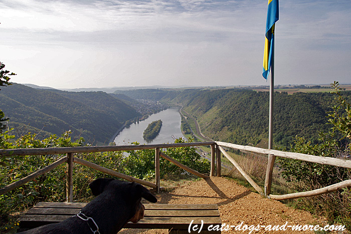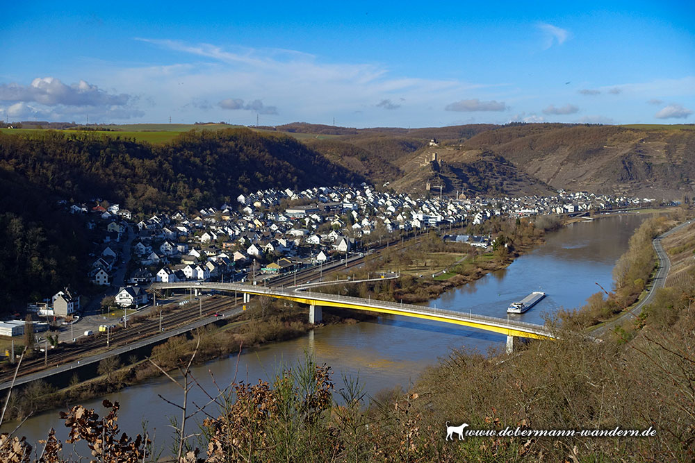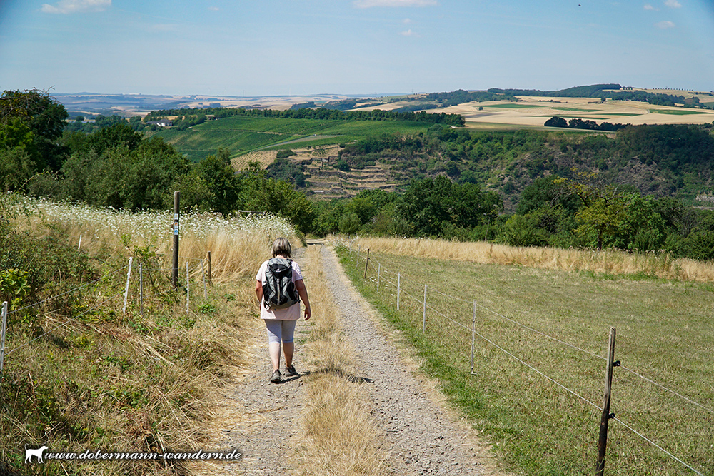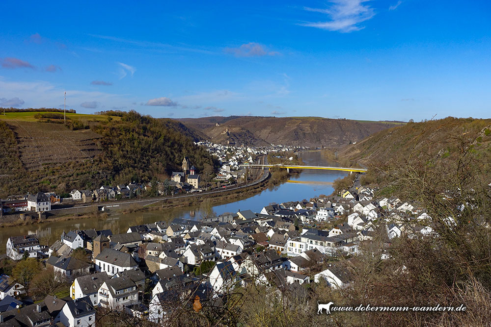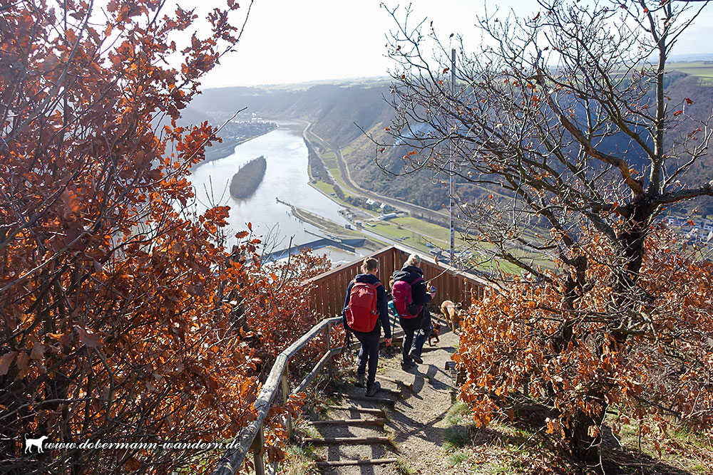 Wieder auf dem richtigen Wag trafen wir anschließend auf den Aussichtspunkt an der Hitzlay, von wo aus sich ein wunderbarer Blick in das Moseltal bot.