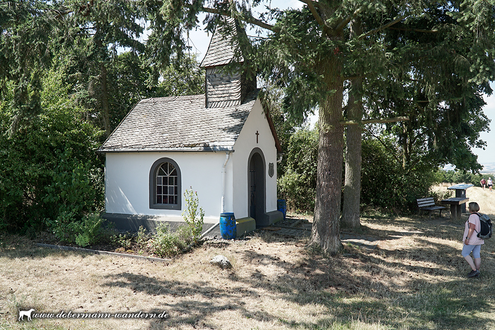Die traurige Geschichte der kleinen Kapelle auf der Moselhöhe wird auf einer Tafel neben dem Eingang erläutert: „Erbaut im Jahr 1912 als Vermächtnis eines Niederfeller Bauern, der sich aus einer Notlage umgebracht hat. Die Kapelle ist ein Zeugnis der Volksfrömmigkeit und steht unter Denkmalschutz.“