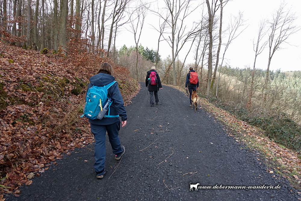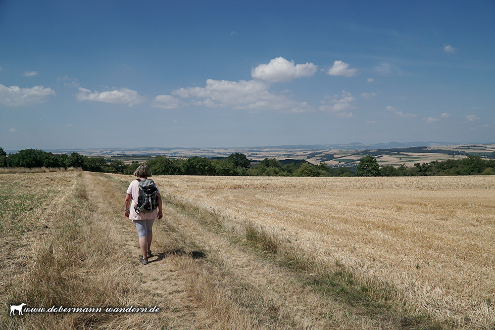 Nach dem bisherigen Wegstück durch den Wald lichtete sich für einen kurzen Abschnitt der Wald und wir konnten in die Ferne schauen, bevor es wieder in den Wald hineinging.