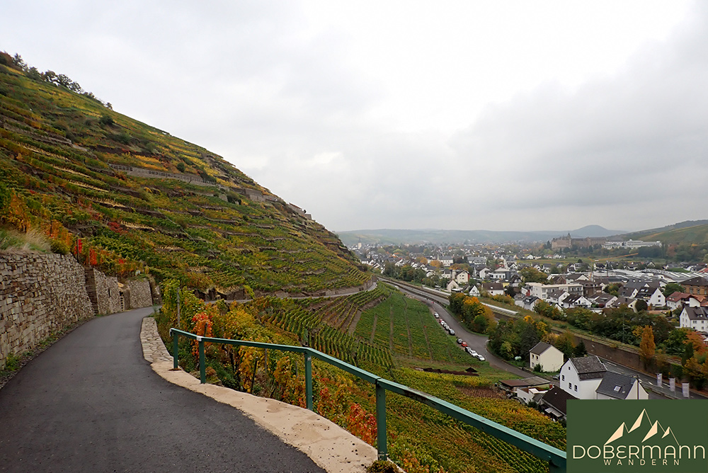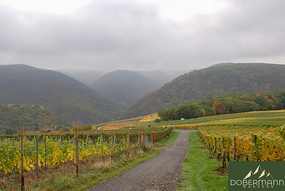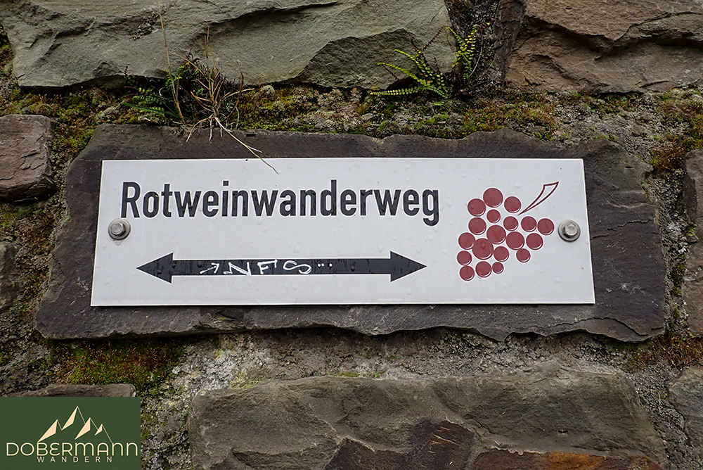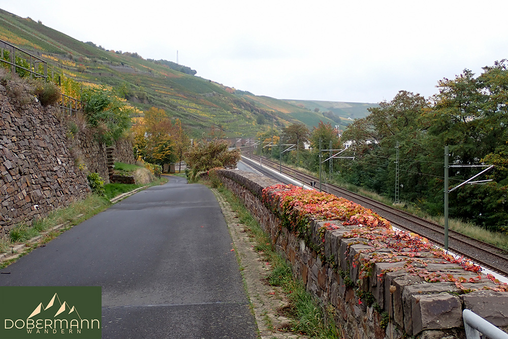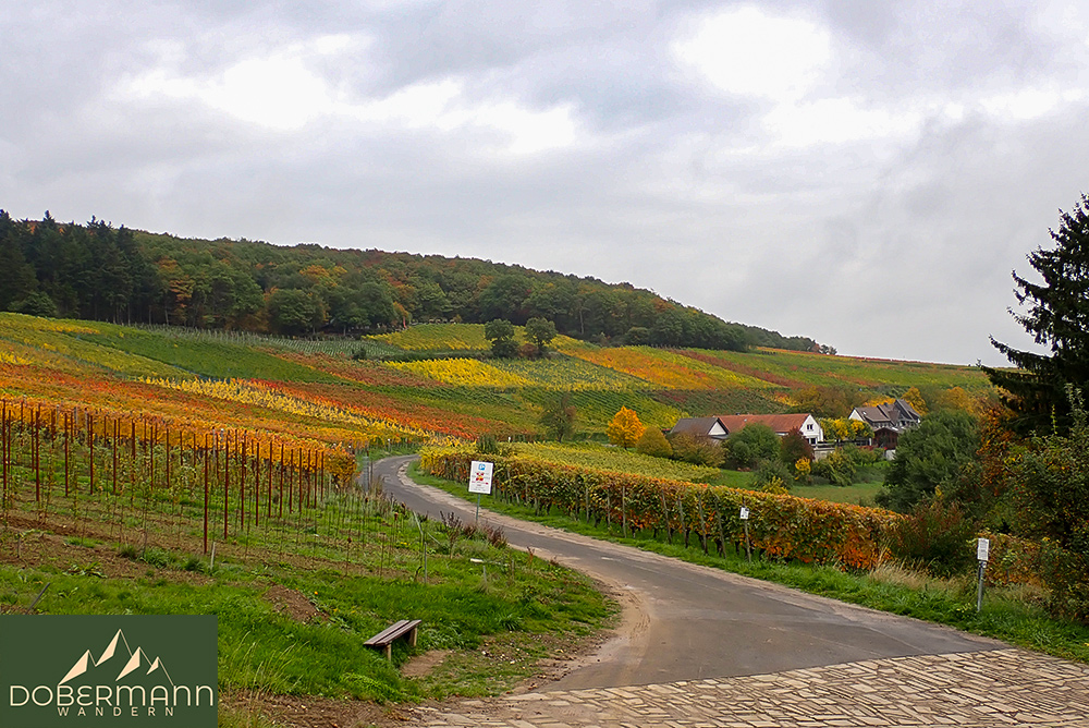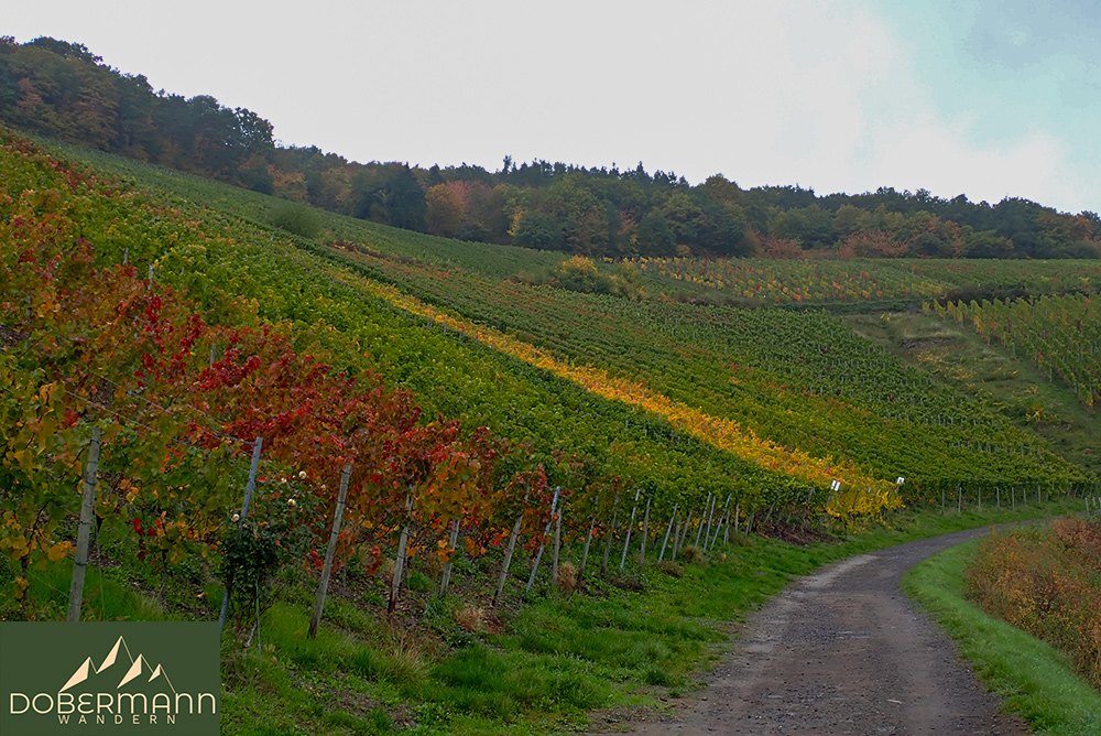 Es geht ein kleines Stück in die Höhe und weiter auf einem Teilstück des Rotweinwanderweges.