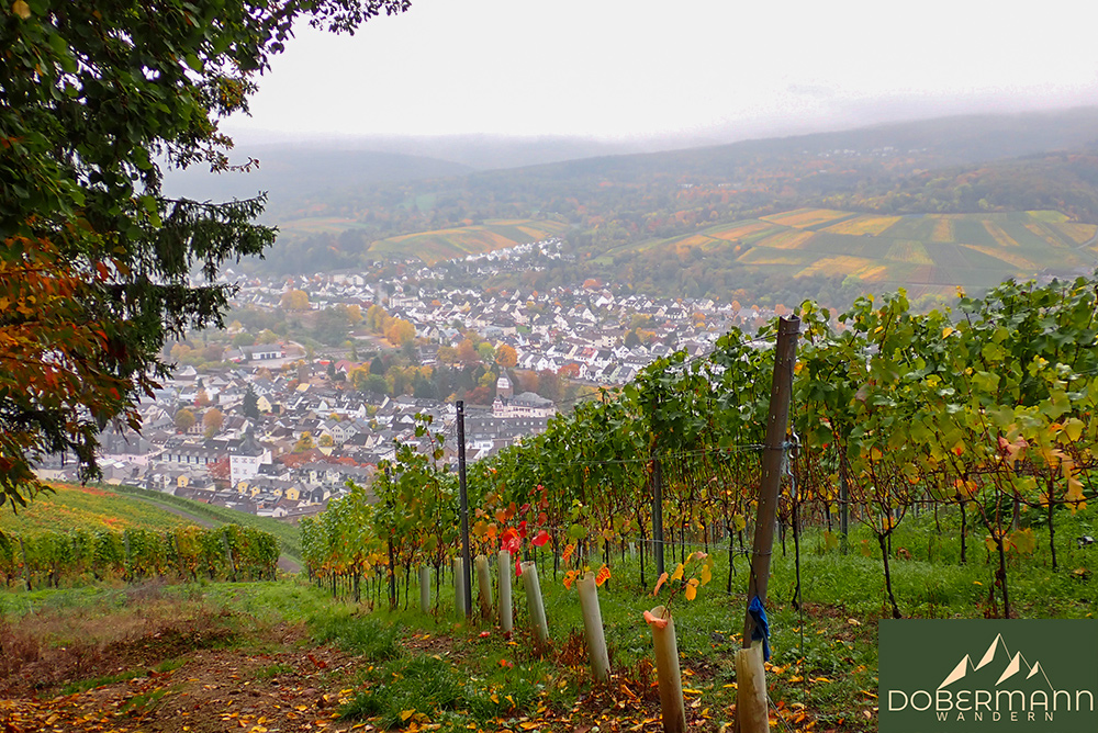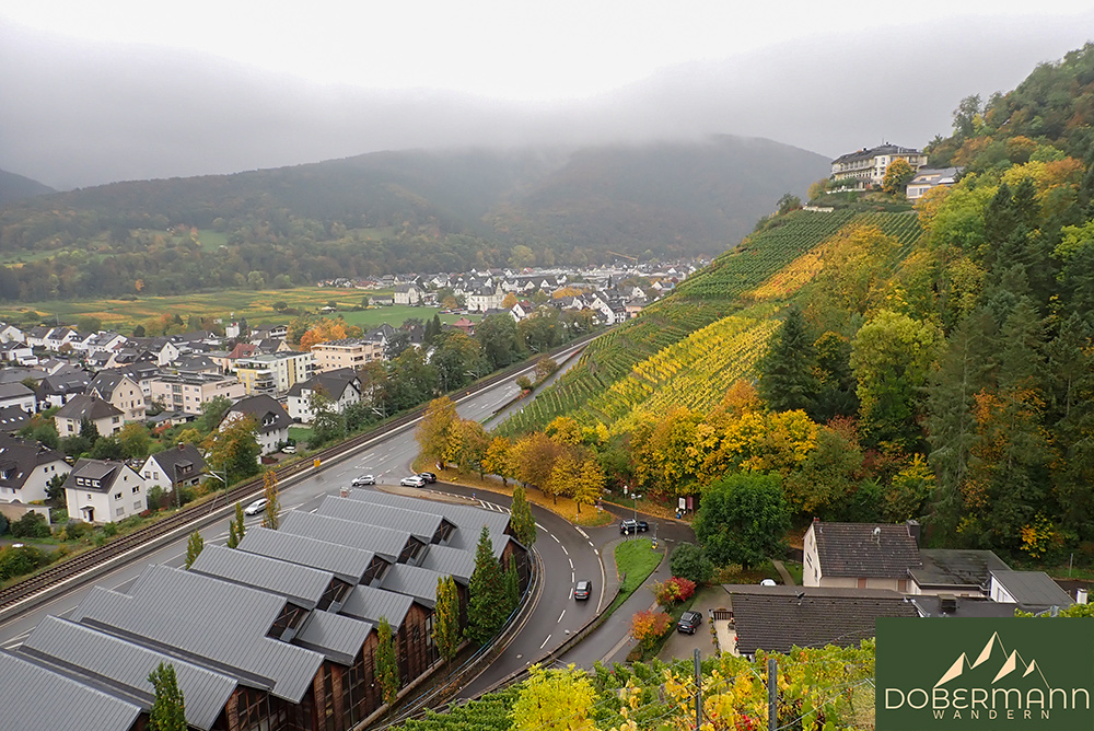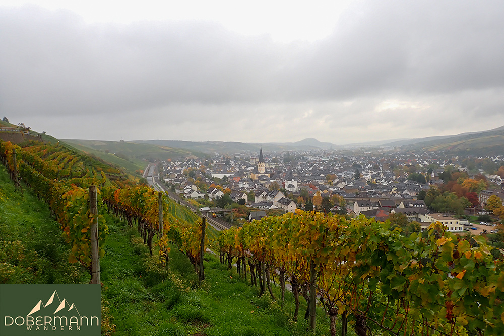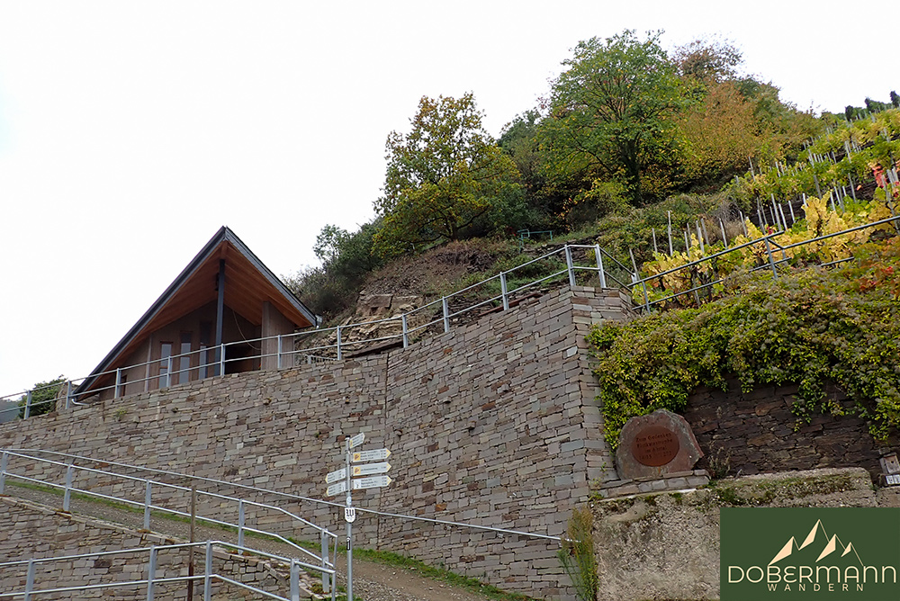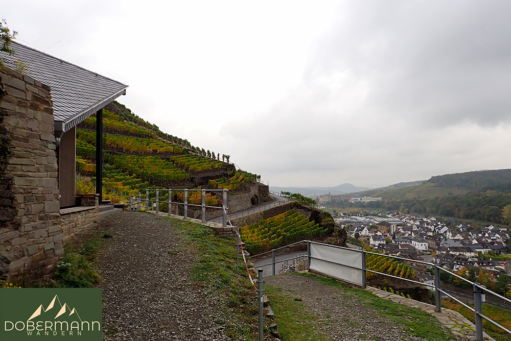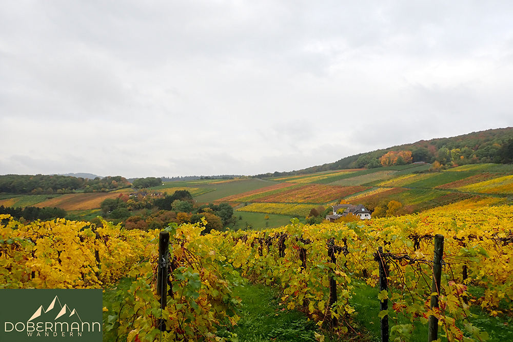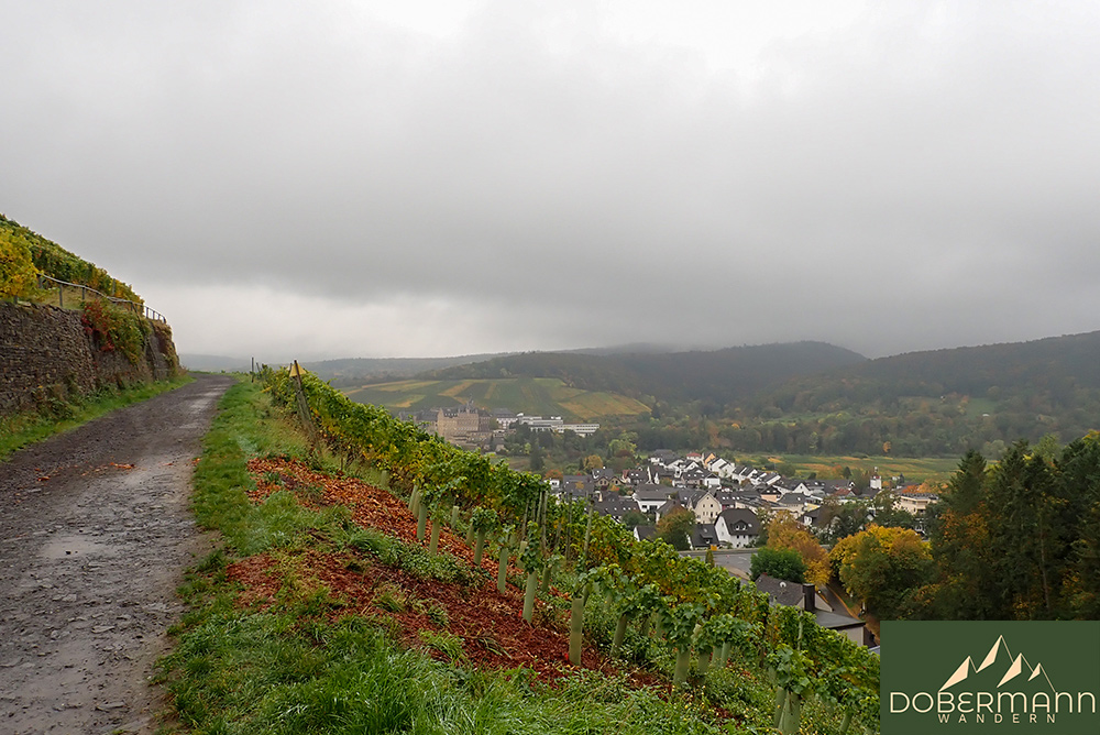 Es geht ein kleines Stück in die Höhe und weiter auf einem Teilstück des Rotweinwanderweges.