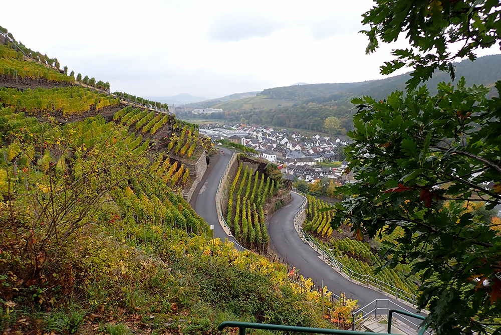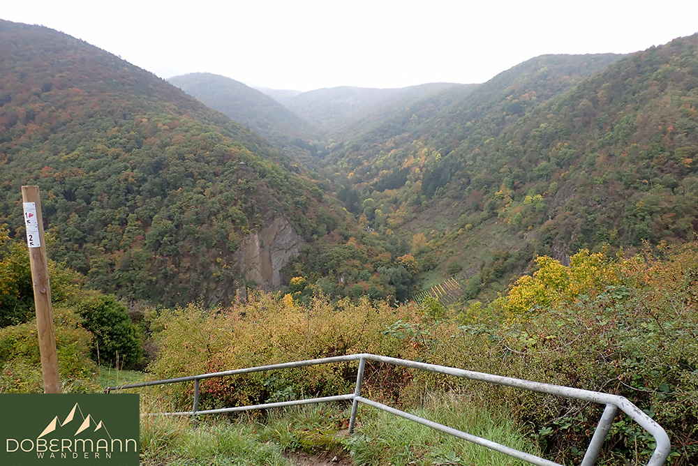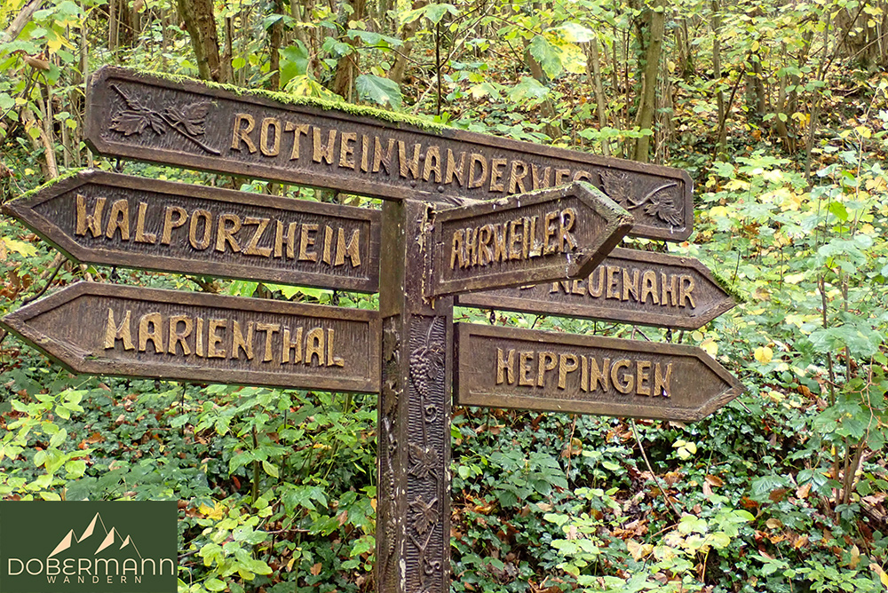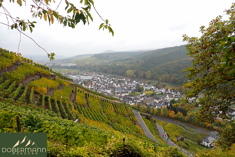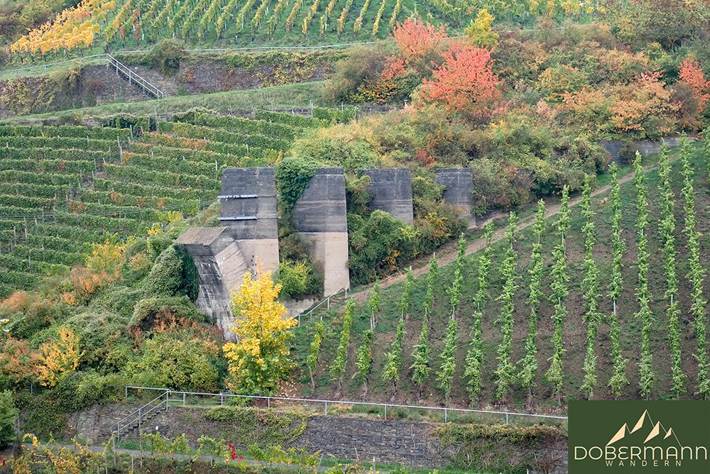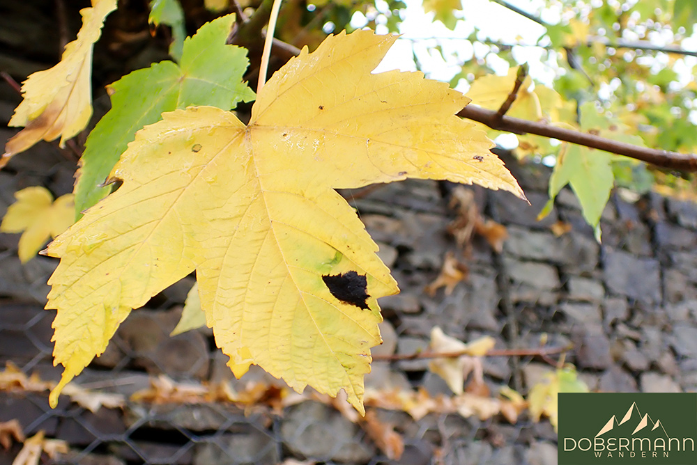 Es geht ein kleines Stück in die Höhe und weiter auf einem Teilstück des Rotweinwanderweges.