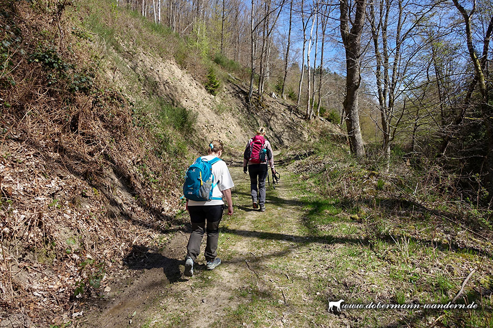 Da wir allerdings zum Decke Tönnes wollen, geht es nach geraumer Zeit für ein längeres Stück in die Höhe und mit einer Schleife weiter.